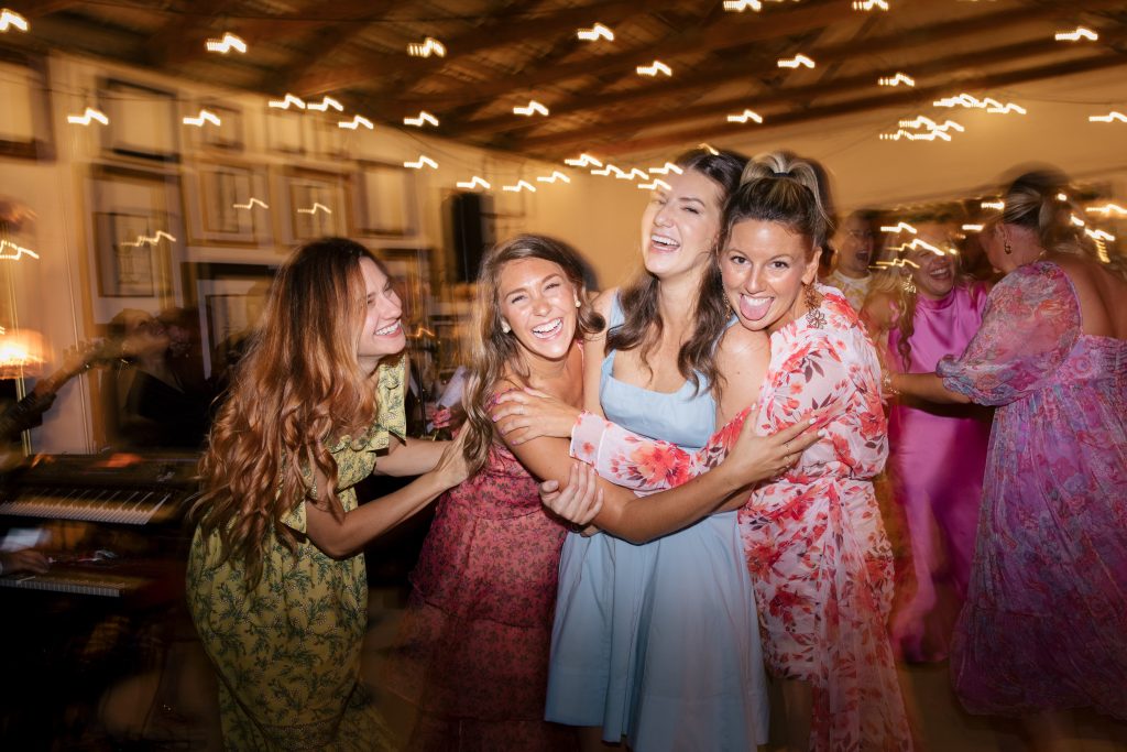 Later, when evening falls and everyone moves into the restored barn, something shifts. The exposed beams overhead, candlelight flickering on tables, the warmth of people gathered close. There’s an intimacy to it. Dancing feels less like a performance and more like pure joy.